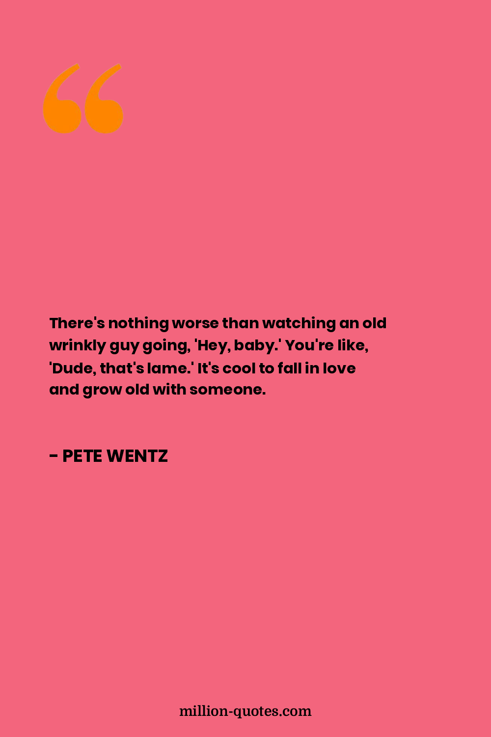 There's nothing worse than watching an old wrinkly guy going, 'Hey, baby.' You're like, 'Dude, that's lame.' It's cool to fall in love and grow old with someone.