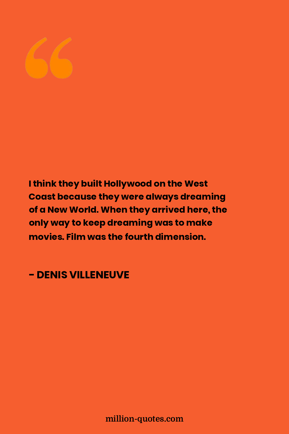 I think they built Hollywood on the West Coast because they were always dreaming of a New World. When they arrived here, the only way to keep dreaming was to make movies. Film was the fourth dimension.