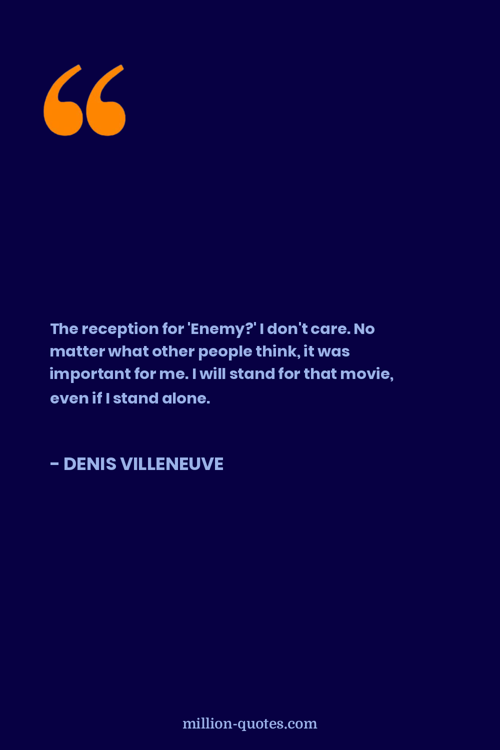 The reception for 'Enemy?' I don't care. No matter what other people think, it was important for me. I will stand for that movie, even if I stand alone.