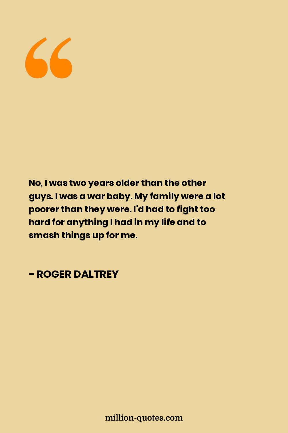 No, I was two years older than the other guys. I was a war baby. My family were a lot poorer than they were. I'd had to fight too hard for anything I had in my life and to smash things up for me.
