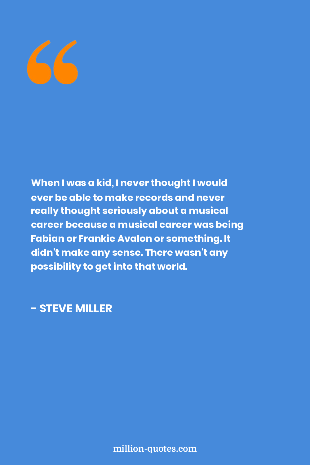 When I was a kid, I never thought I would ever be able to make records and never really thought seriously about a musical career because a musical career was being Fabian or Frankie Avalon or something. It didn't make any sense. There wasn't any possibility to get into that world.