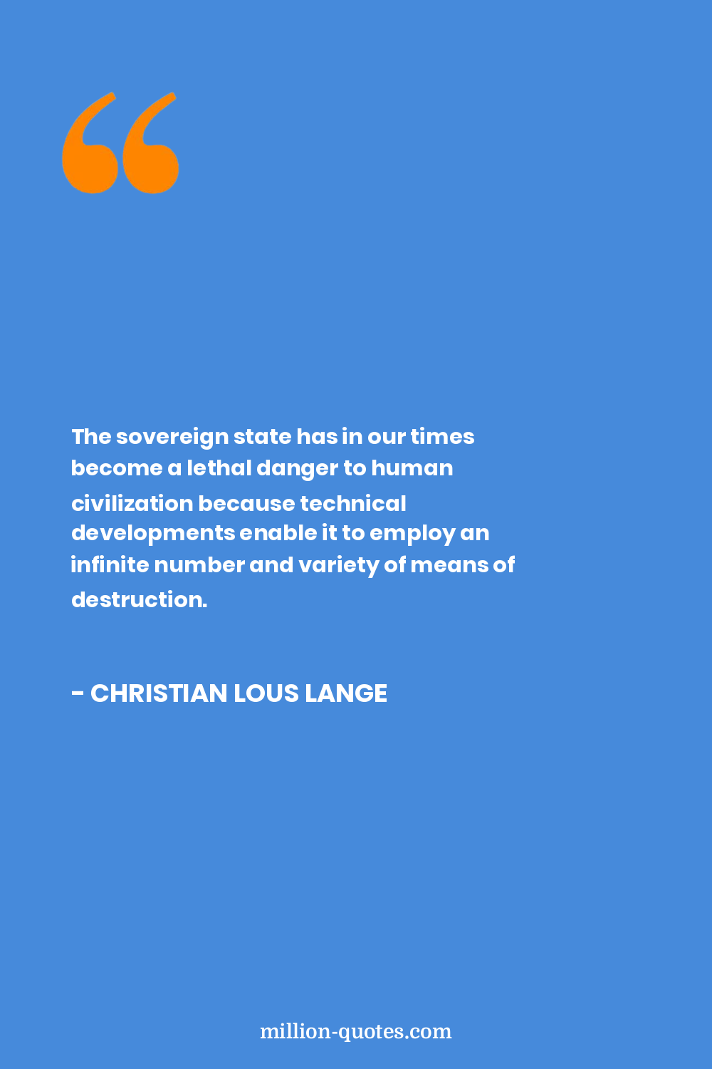 The sovereign state has in our times become a lethal danger to human civilization because technical developments enable it to employ an infinite number and variety of means of destruction.