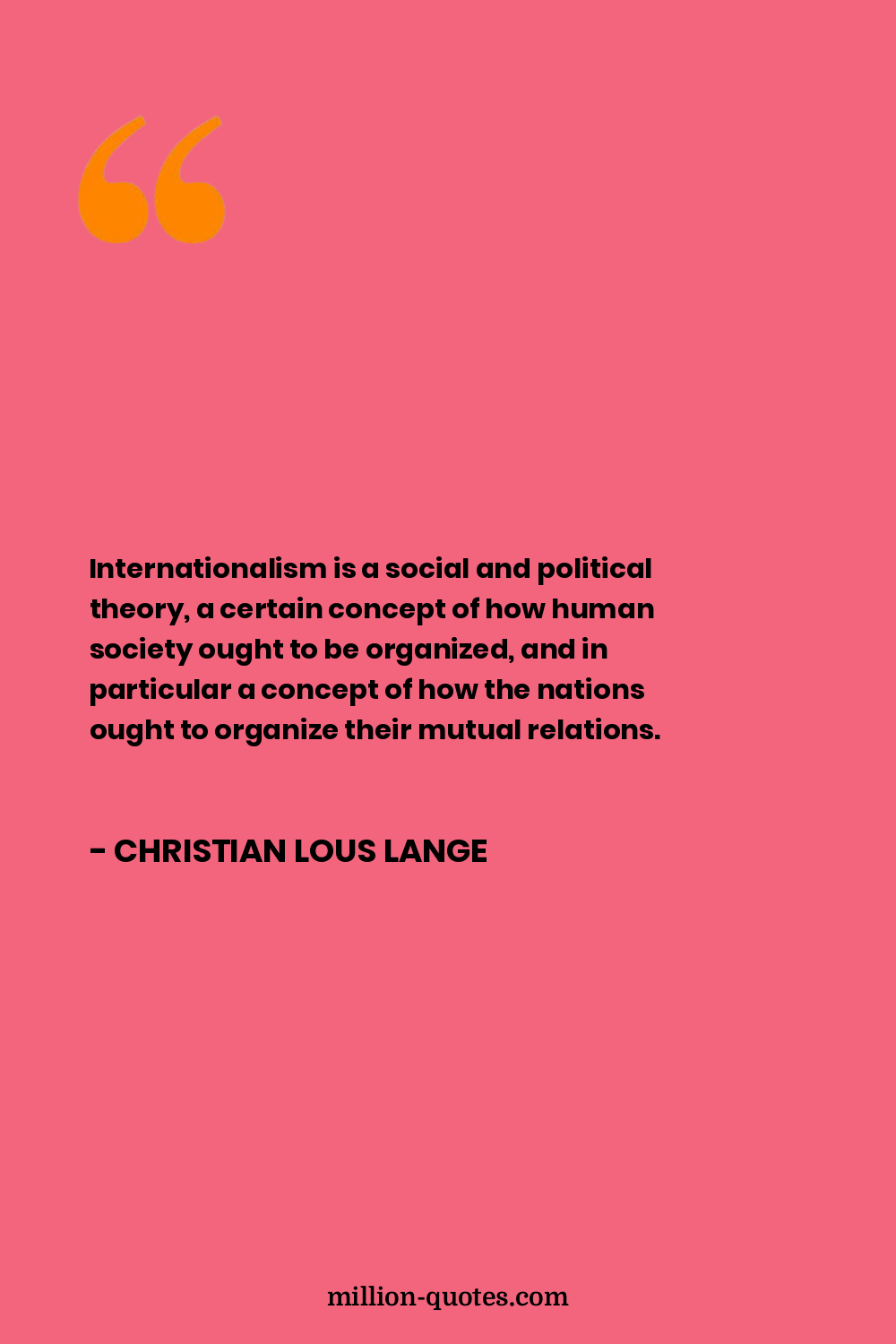 Internationalism is a social and political theory, a certain concept of how human society ought to be organized, and in particular a concept of how the nations ought to organize their mutual relations.