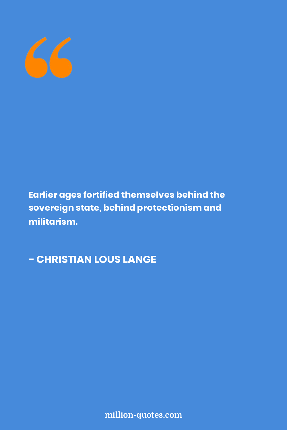 Earlier ages fortified themselves behind the sovereign state, behind protectionism and militarism.