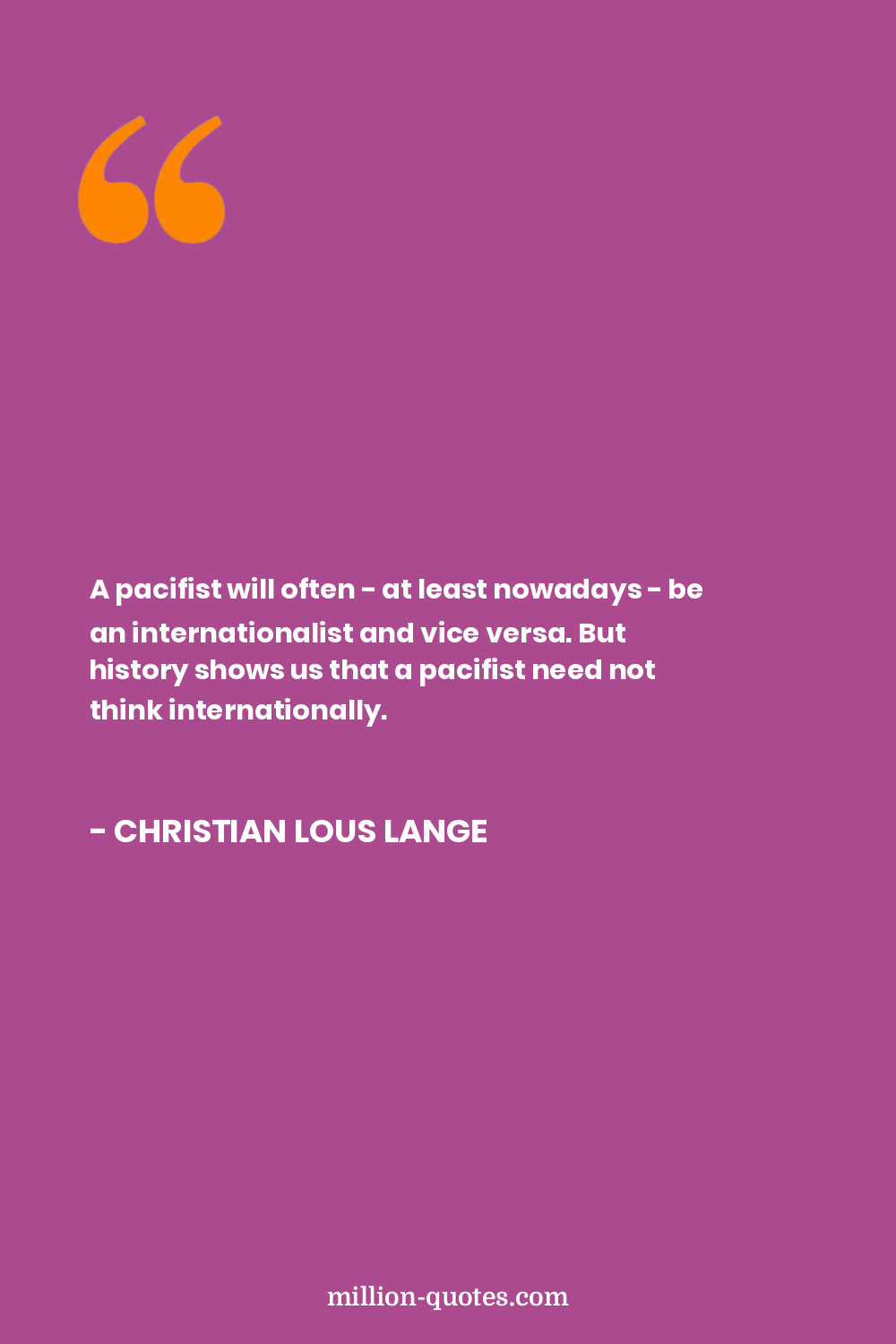 A pacifist will often - at least nowadays - be an internationalist and vice versa. But history shows us that a pacifist need not think internationally.