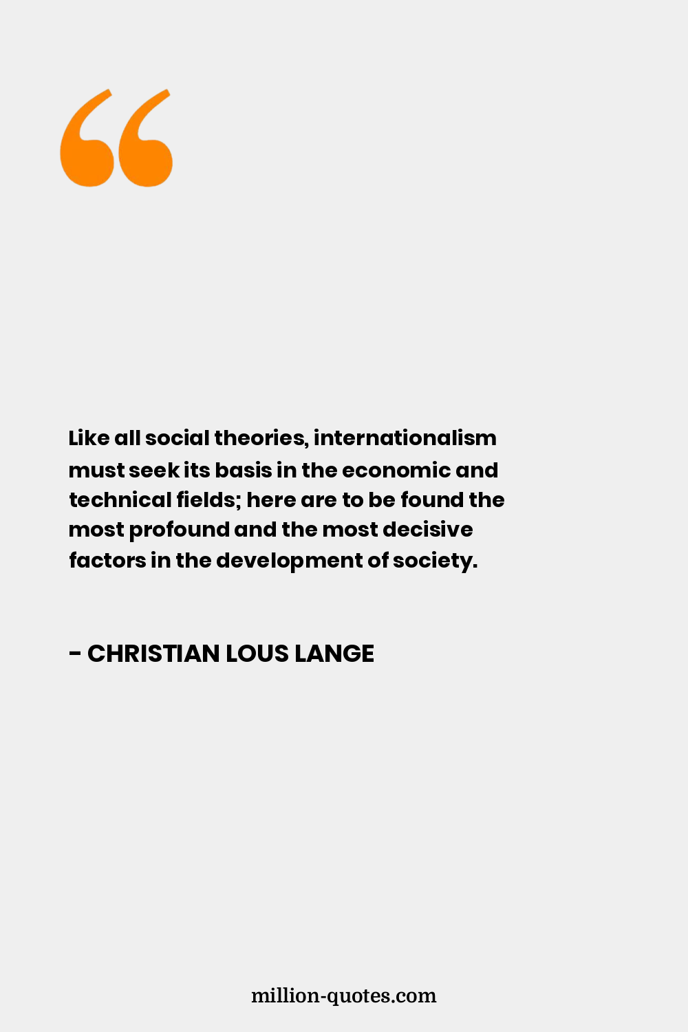 Like all social theories, internationalism must seek its basis in the economic and technical fields; here are to be found the most profound and the most decisive factors in the development of society.