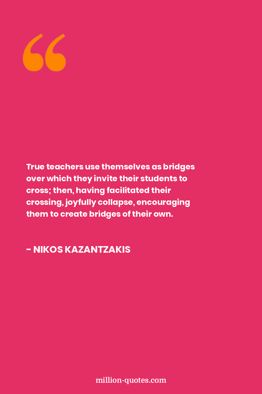 True teachers use themselves as bridges over which they invite their students to cross; then, having facilitated their crossing, joyfully collapse, encouraging them to create bridges of their own.