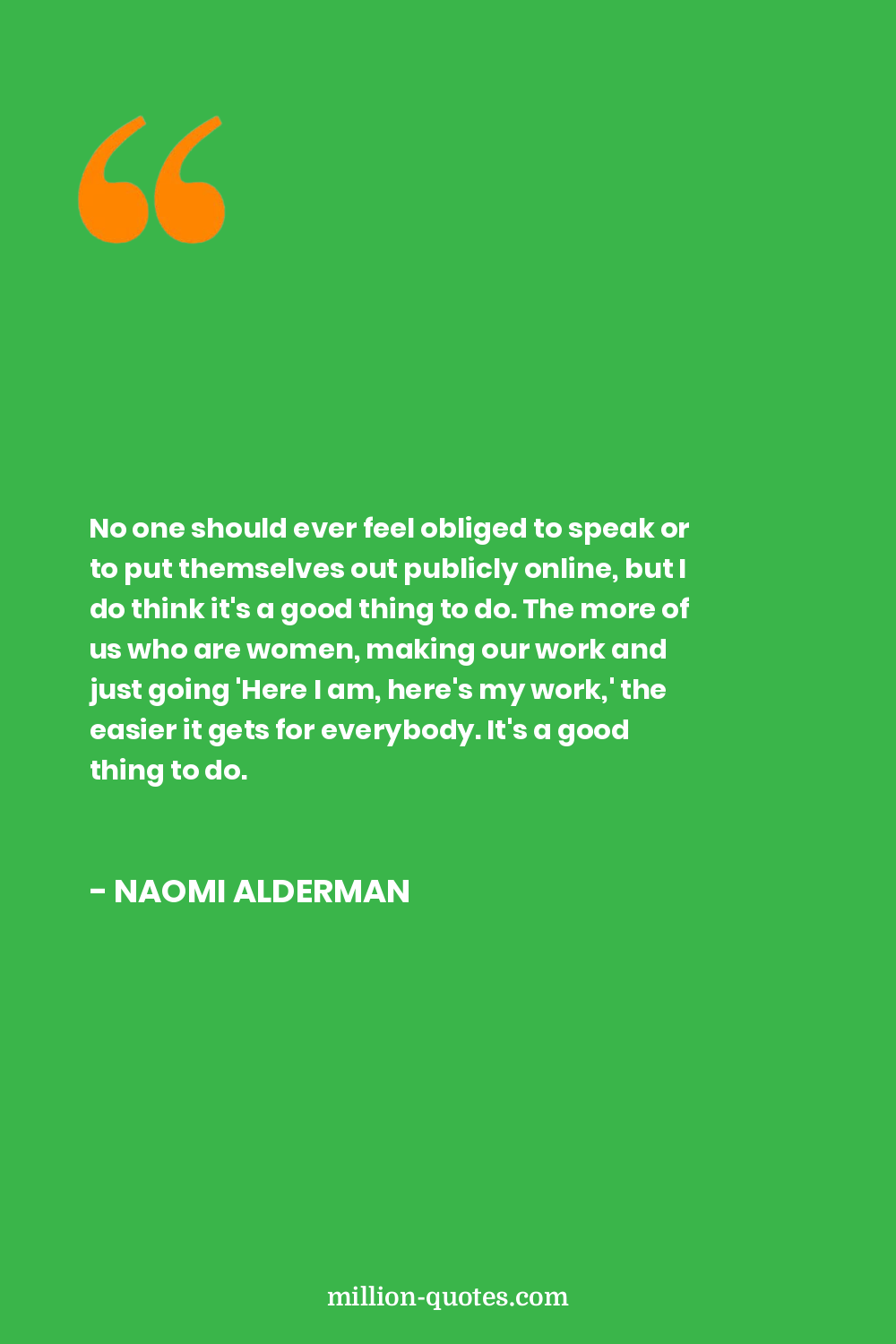 No one should ever feel obliged to speak or to put themselves out publicly online, but I do think it's a good thing to do. The more of us who are women, making our work and just going 'Here I am, here's my work,' the easier it gets for everybody. It's a good thing to do.
