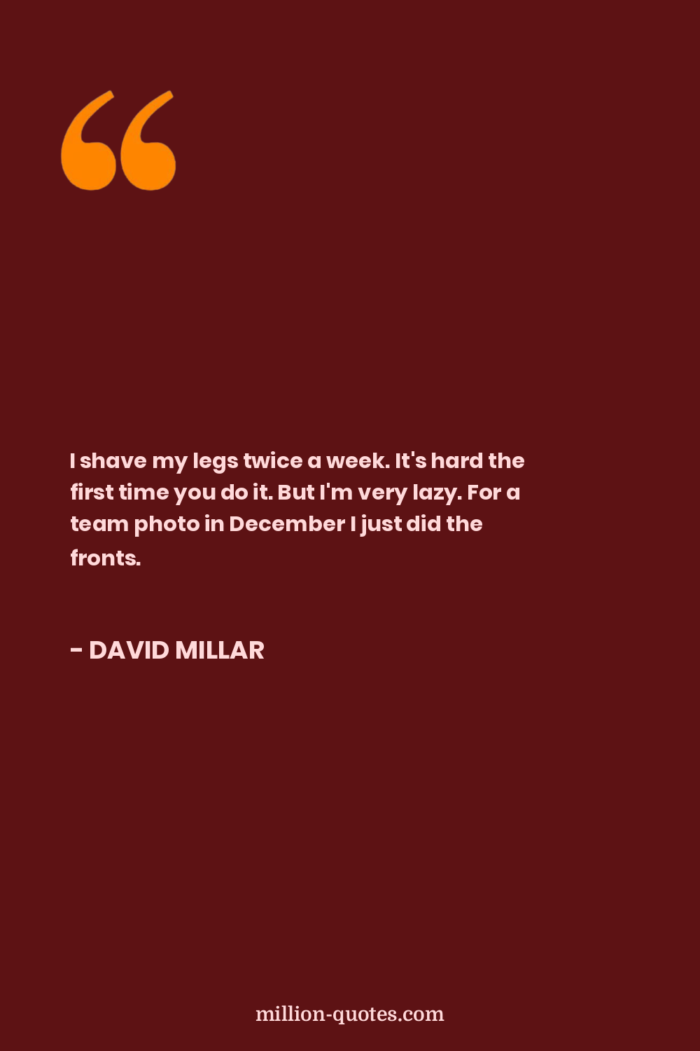 I shave my legs twice a week. It's hard the first time you do it. But I'm very lazy. For a team photo in December I just did the fronts.