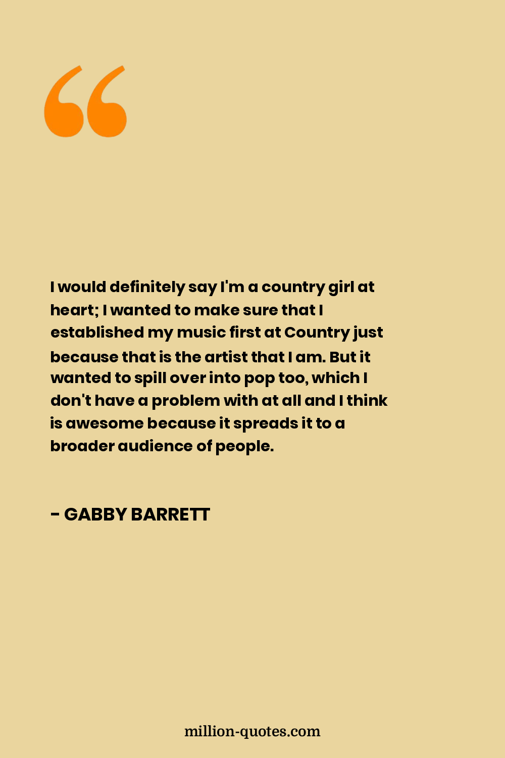 I would definitely say I'm a country girl at heart; I wanted to make sure that I established my music first at Country just because that is the artist that I am. But it wanted to spill over into pop too, which I don't have a problem with at all and I think is awesome because it spreads it to a broader audience of people.