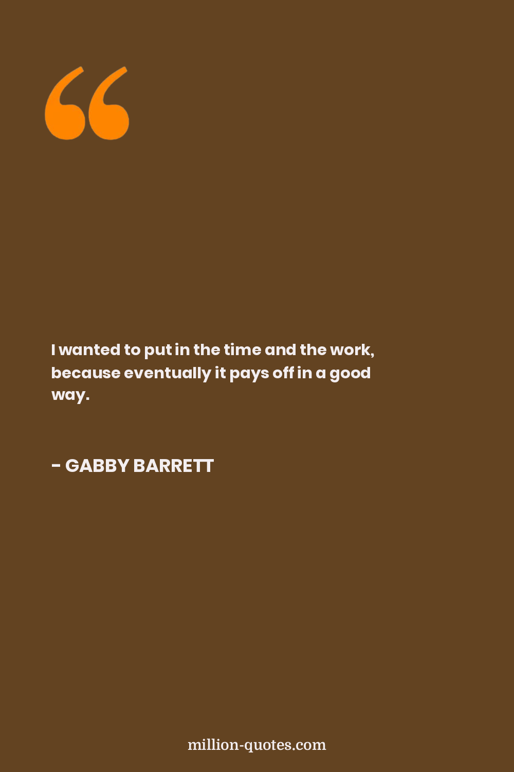 I wanted to put in the time and the work, because eventually it pays off in a good way.