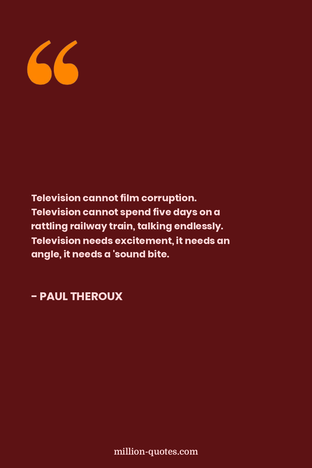 Television cannot film corruption. Television cannot spend five days on a rattling railway train, talking endlessly. Television needs excitement, it needs an angle, it needs a 'sound bite.
