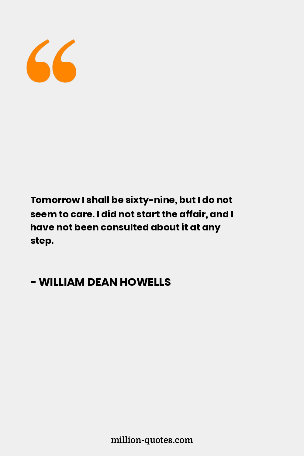 Tomorrow I shall be sixty-nine, but I do not seem to care. I did not start the affair, and I have not been consulted about it at any step.