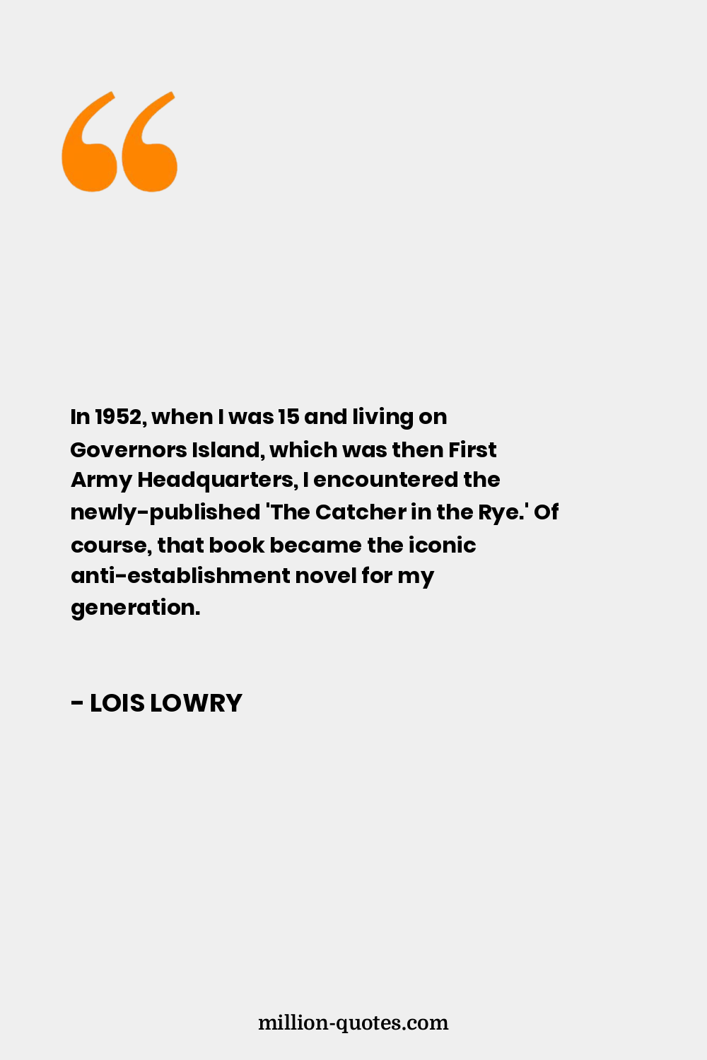 In 1952, when I was 15 and living on Governors Island, which was then First Army Headquarters, I encountered the newly-published 'The Catcher in the Rye.' Of course, that book became the iconic anti-establishment novel for my generation.