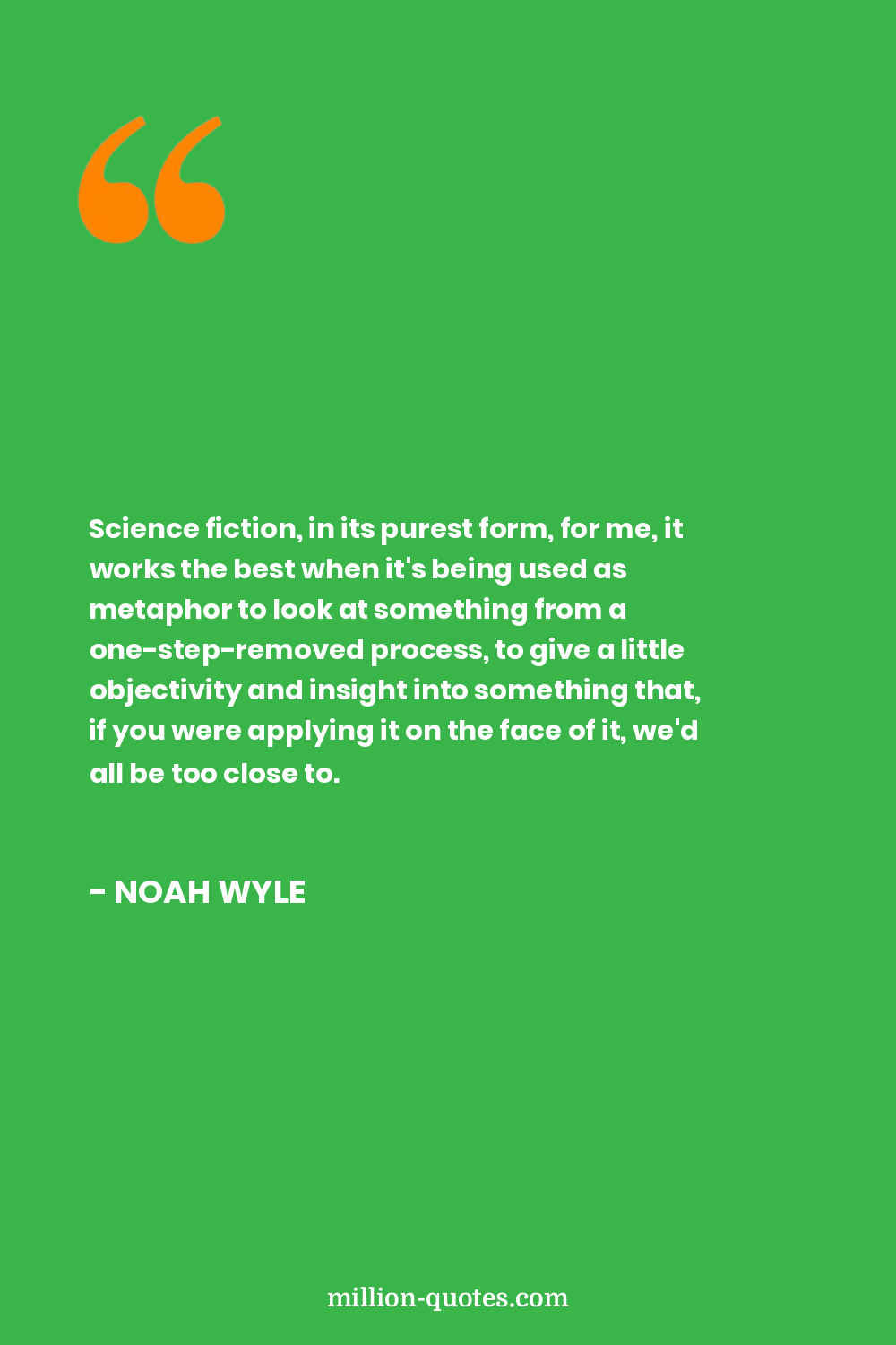 Science fiction, in its purest form, for me, it works the best when it's being used as metaphor to look at something from a one-step-removed process, to give a little objectivity and insight into something that, if you were applying it on the face of it, we'd all be too close to.