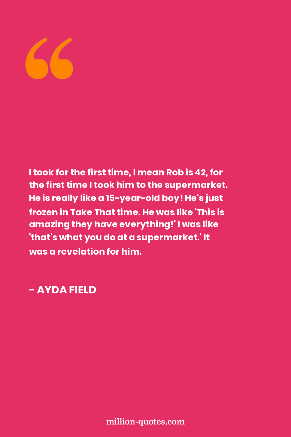 I took for the first time, I mean Rob is 42, for the first time I took him to the supermarket. He is really like a 15-year-old boy! He's just frozen in Take That time. He was like 'This is amazing they have everything!' I was like 'that's what you do at a supermarket.' It was a revelation for him.