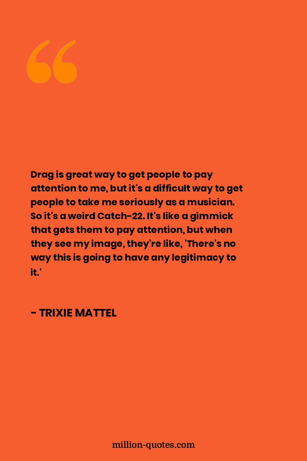 Drag is great way to get people to pay attention to me, but it's a difficult way to get people to take me seriously as a musician. So it's a weird Catch-22. It's like a gimmick that gets them to pay attention, but when they see my image, they're like, 'There's no way this is going to have any legitimacy to it.'