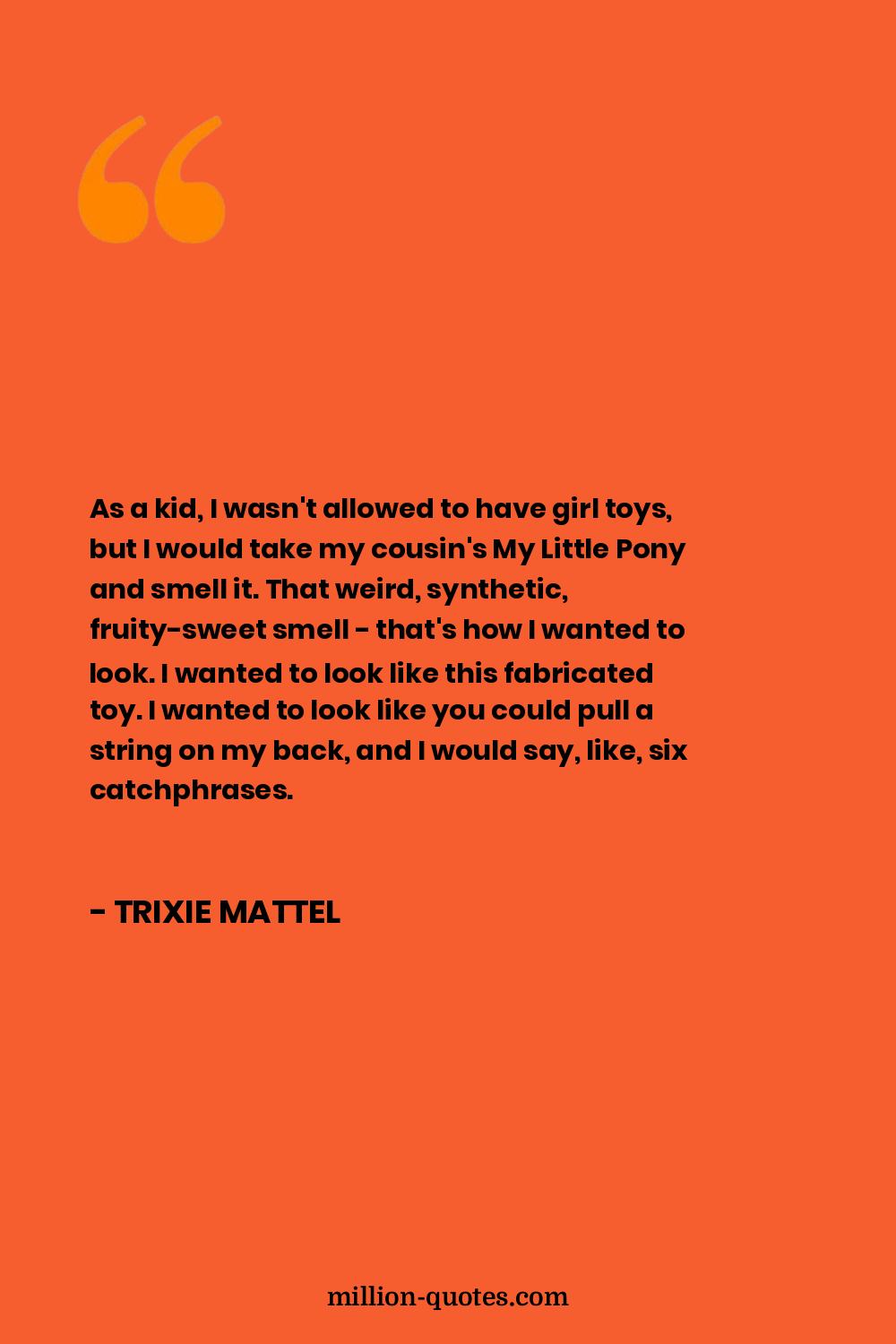 As a kid, I wasn't allowed to have girl toys, but I would take my cousin's My Little Pony and smell it. That weird, synthetic, fruity-sweet smell - that's how I wanted to look. I wanted to look like this fabricated toy. I wanted to look like you could pull a string on my back, and I would say, like, six catchphrases.