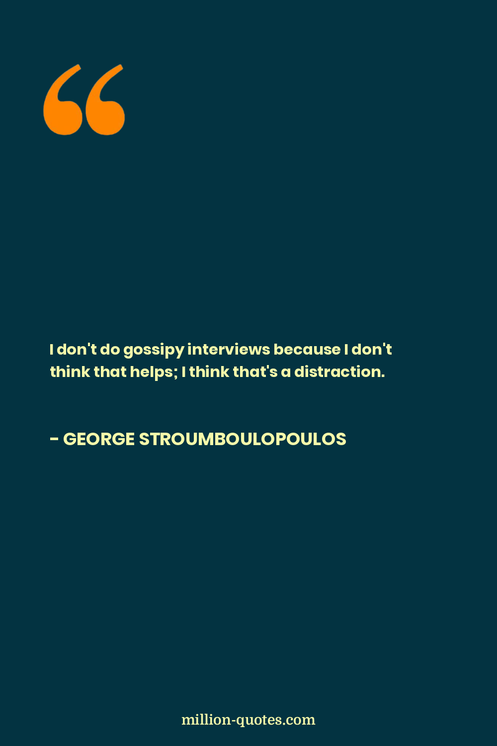 I don't do gossipy interviews because I don't think that helps; I think that's a distraction.