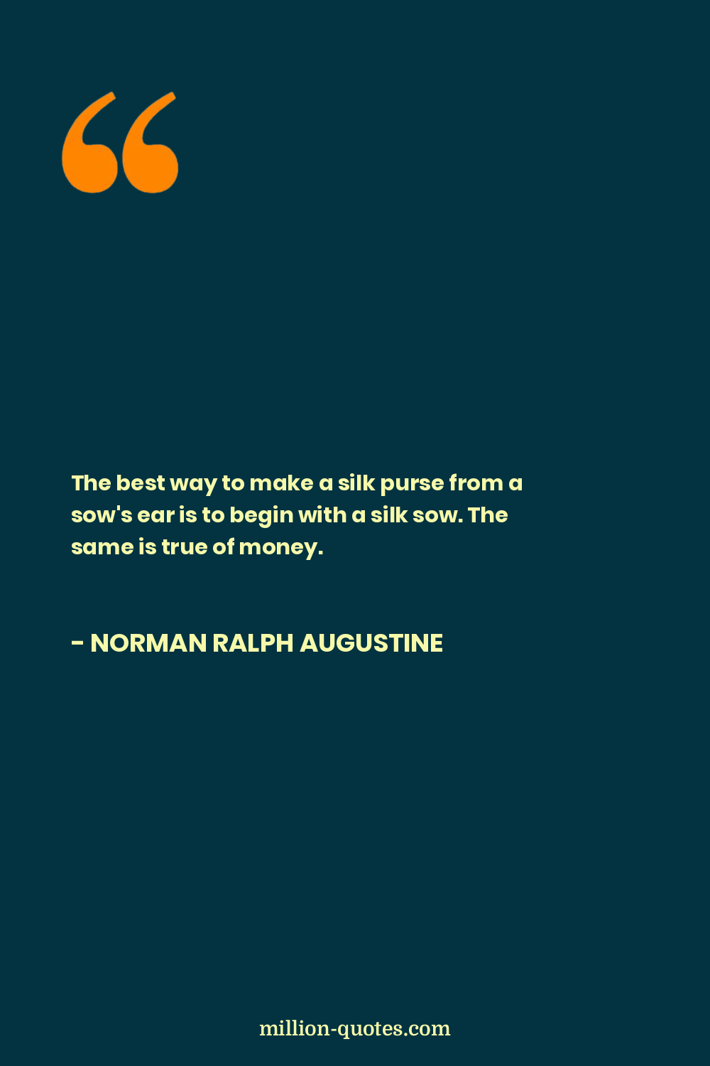 The best way to make a silk purse from a sow's ear is to begin with a silk sow. The same is true of money.