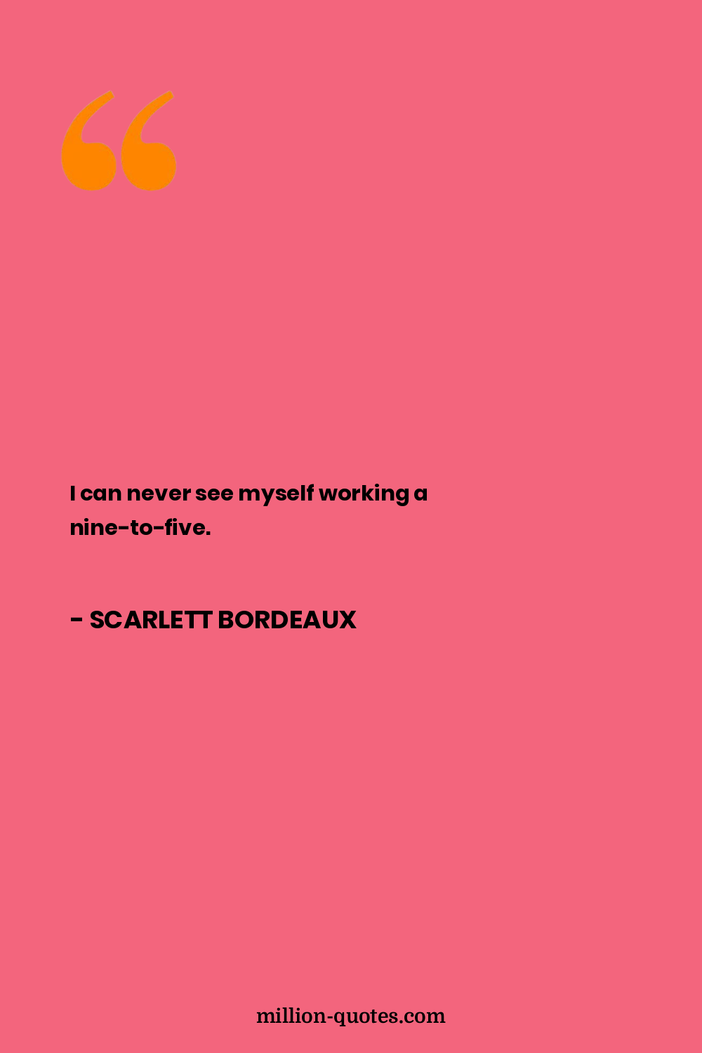 I can never see myself working a nine-to-five.