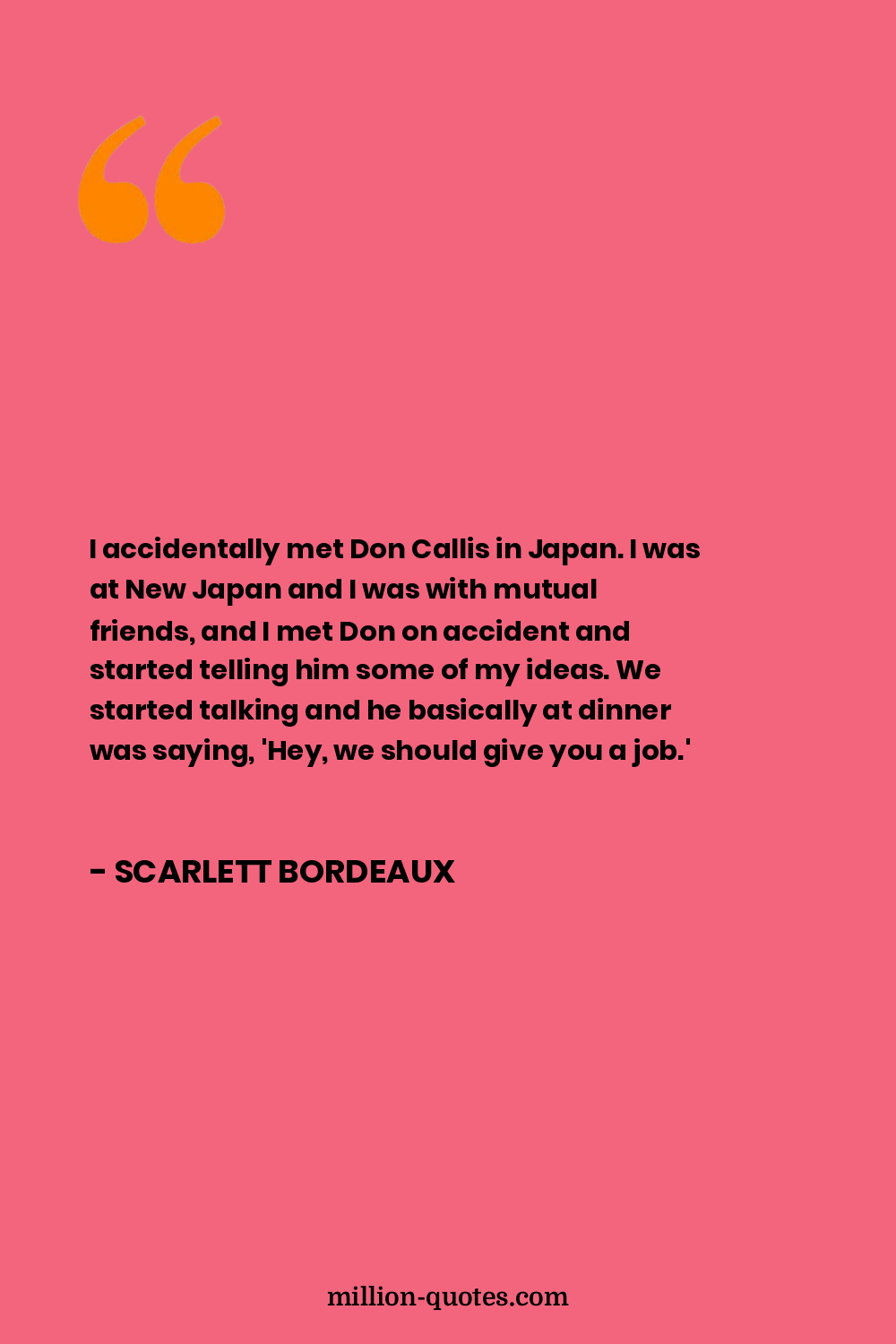 I accidentally met Don Callis in Japan. I was at New Japan and I was with mutual friends, and I met Don on accident and started telling him some of my ideas. We started talking and he basically at dinner was saying, 'Hey, we should give you a job.'
