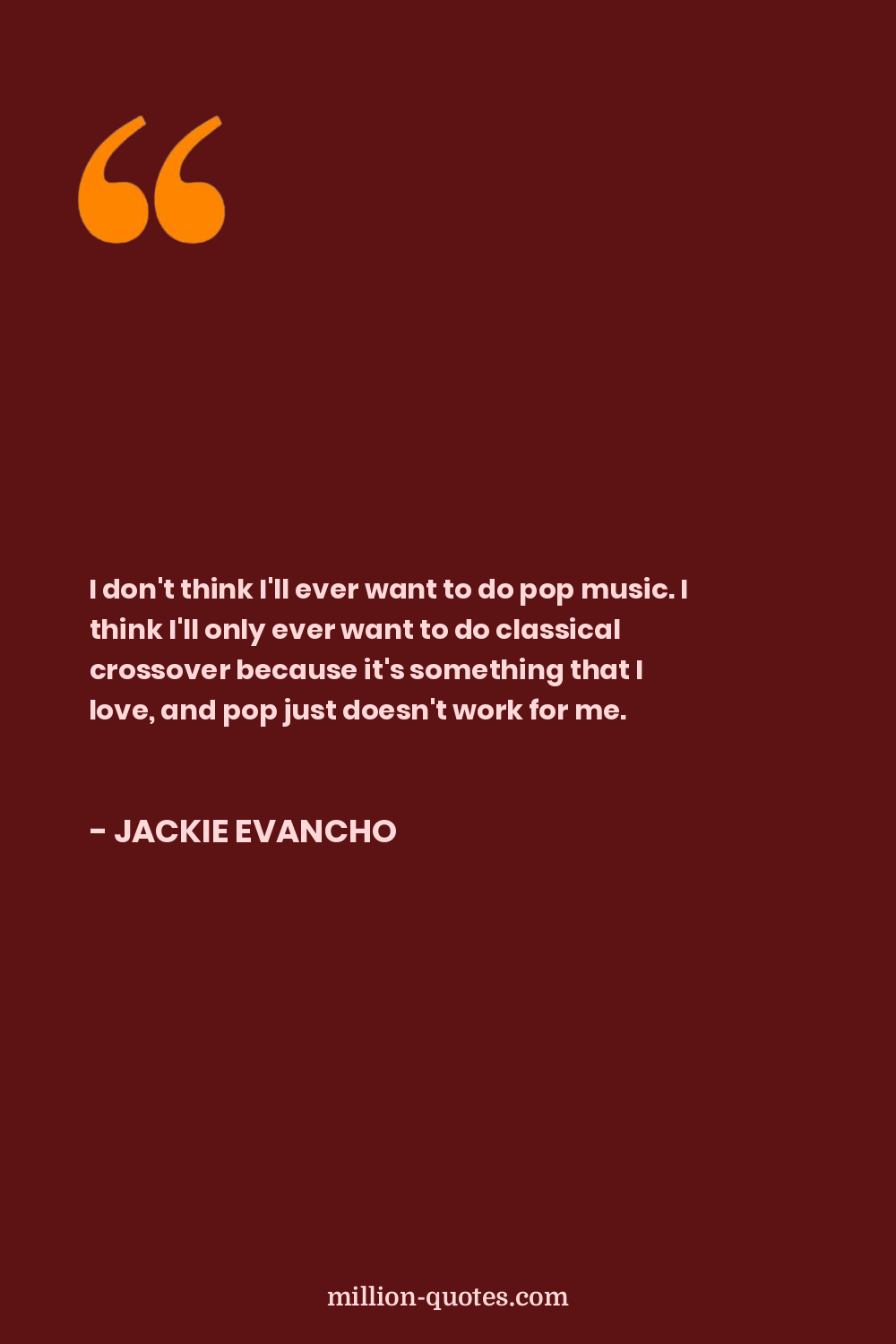 I don't think I'll ever want to do pop music. I think I'll only ever want to do classical crossover because it's something that I love, and pop just doesn't work for me.