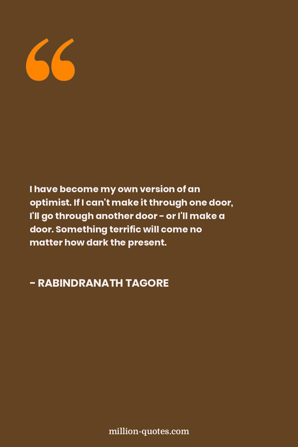 I have become my own version of an optimist. If I can't make it through one door, I'll go through another door - or I'll make a door. Something terrific will come no matter how dark the present.