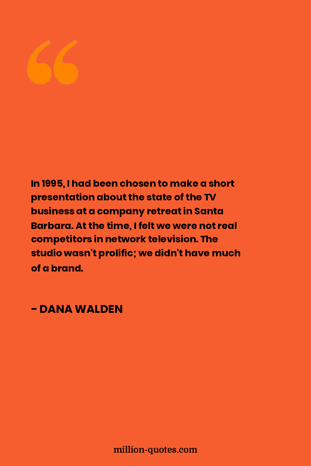 In 1995, I had been chosen to make a short presentation about the state of the TV business at a company retreat in Santa Barbara. At the time, I felt we were not real competitors in network television. The studio wasn't prolific; we didn't have much of a brand.