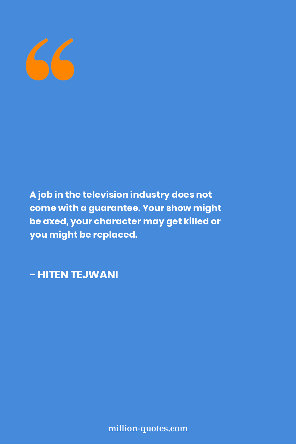 A job in the television industry does not come with a guarantee. Your show might be axed, your character may get killed or you might be replaced.