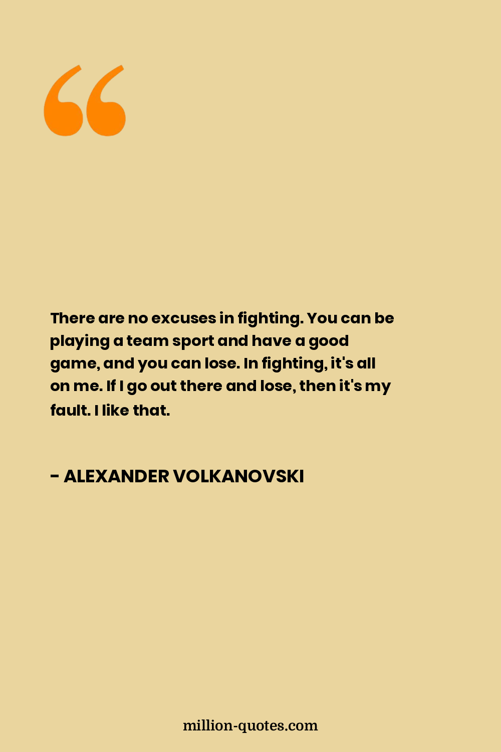 There are no excuses in fighting. You can be playing a team sport and have a good game, and you can lose. In fighting, it's all on me. If I go out there and lose, then it's my fault. I like that.