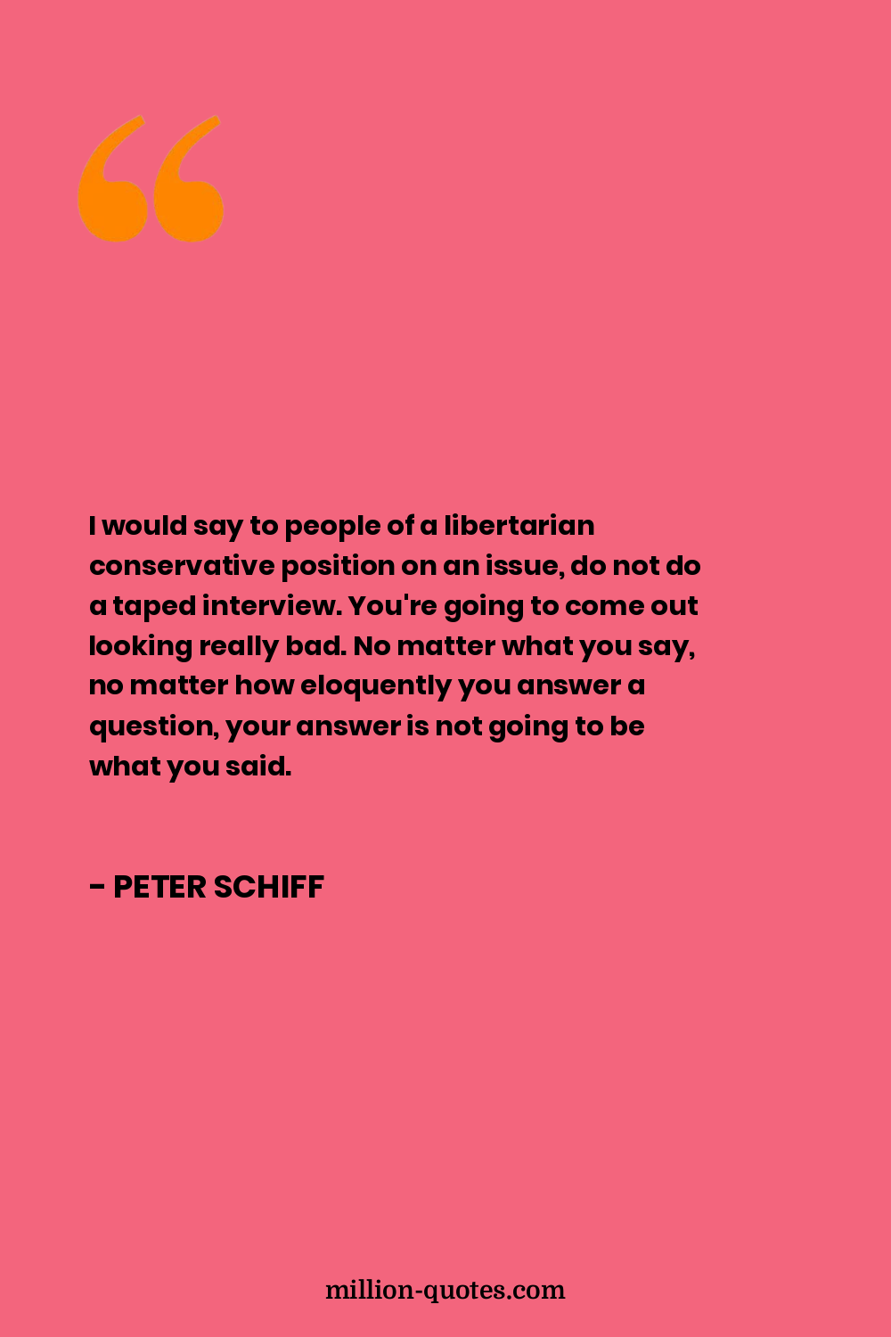 I would say to people of a libertarian conservative position on an issue, do not do a taped interview. You're going to come out looking really bad. No matter what you say, no matter how eloquently you answer a question, your answer is not going to be what you said.