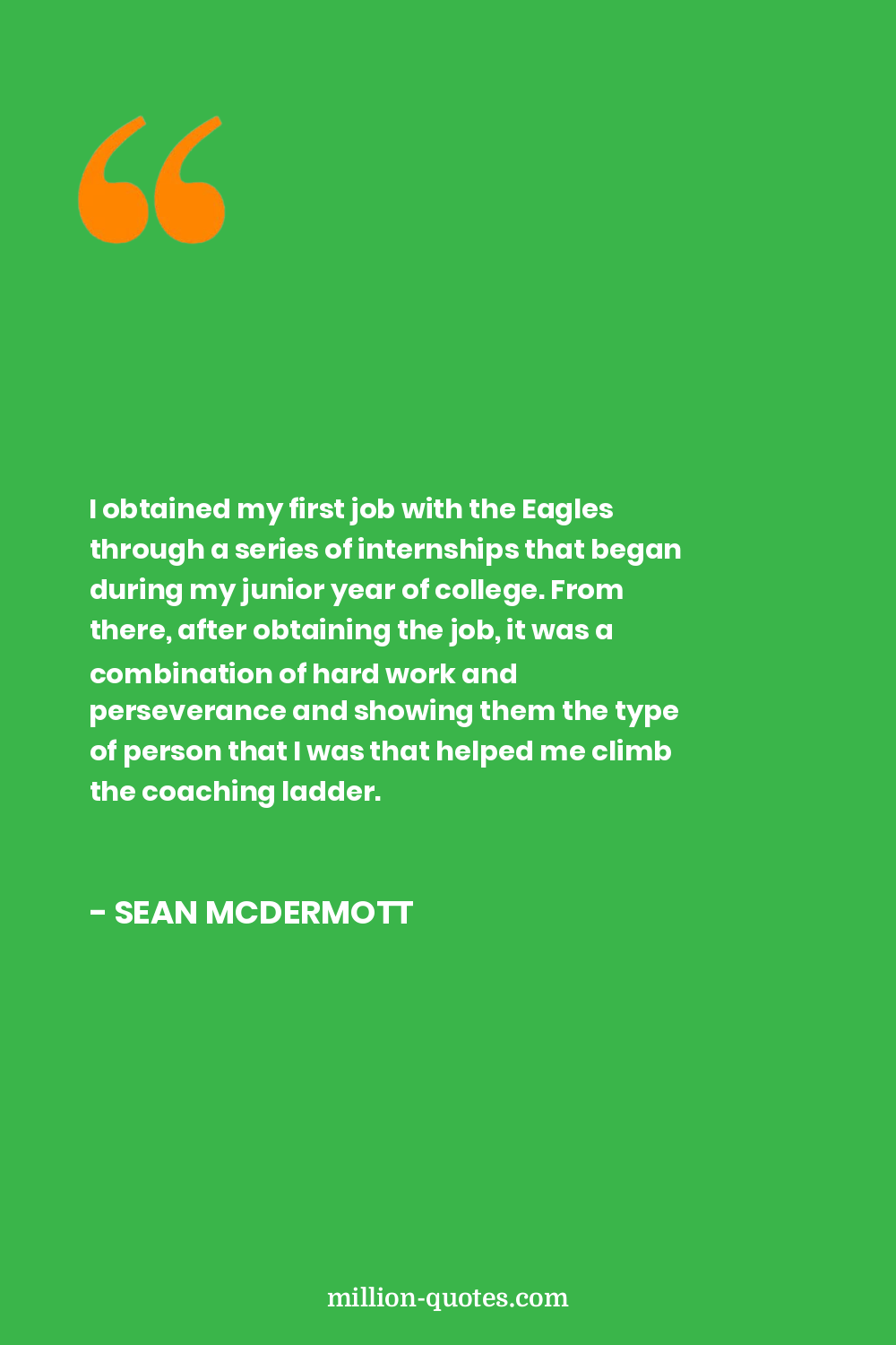 I obtained my first job with the Eagles through a series of internships that began during my junior year of college. From there, after obtaining the job, it was a combination of hard work and perseverance and showing them the type of person that I was that helped me climb the coaching ladder.