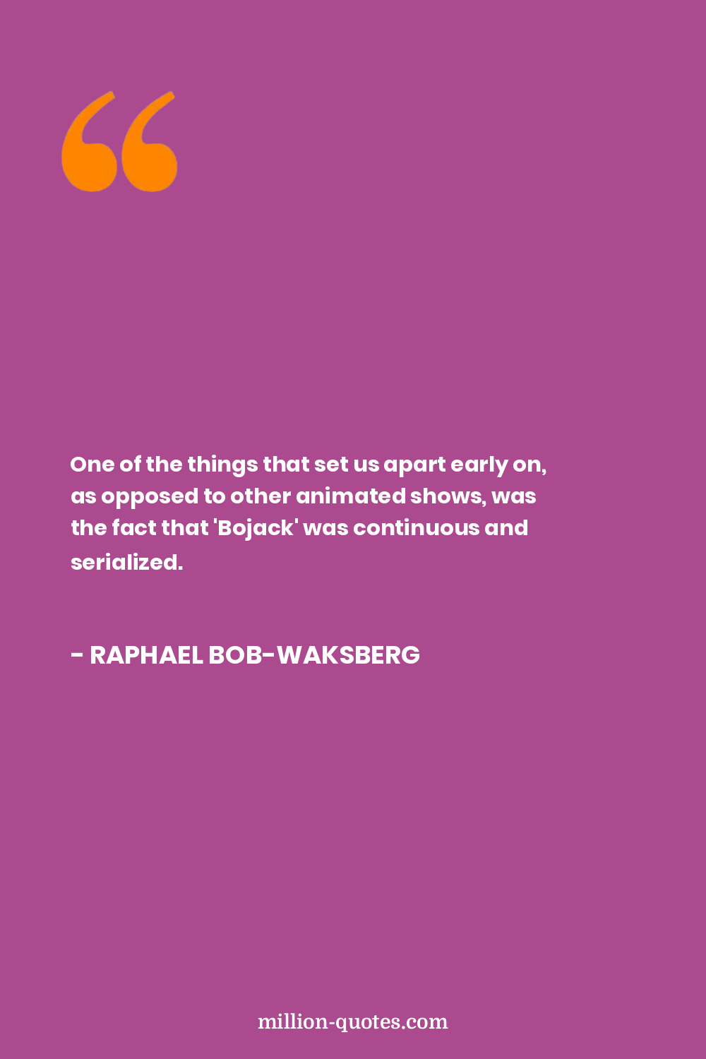 One of the things that set us apart early on, as opposed to other animated shows, was the fact that 'Bojack' was continuous and serialized.