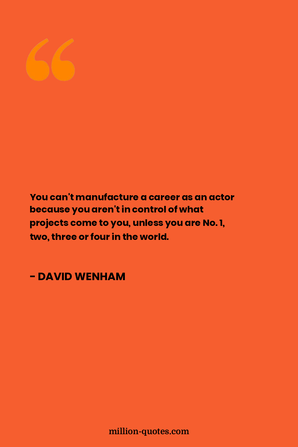 You can't manufacture a career as an actor because you aren't in control of what projects come to you, unless you are No. 1, two, three or four in the world.
