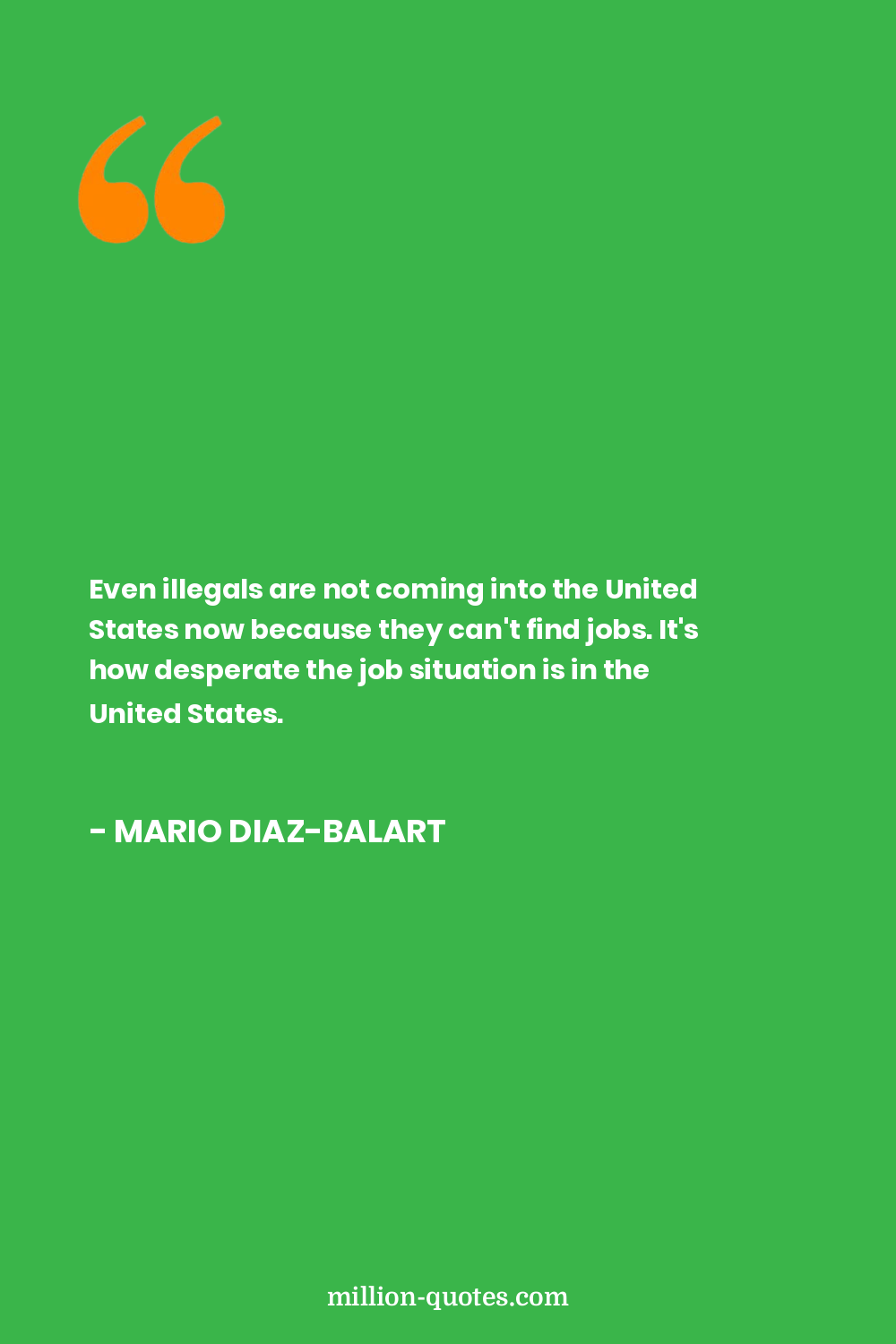 Even illegals are not coming into the United States now because they can't find jobs. It's how desperate the job situation is in the United States.