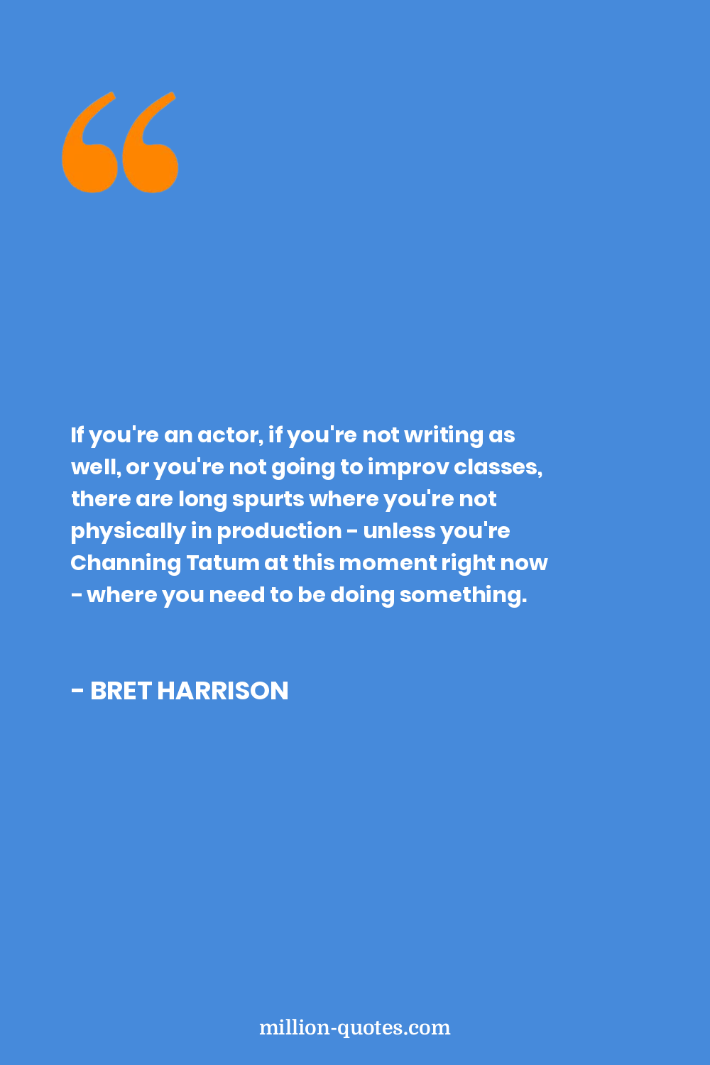 If you're an actor, if you're not writing as well, or you're not going to improv classes, there are long spurts where you're not physically in production - unless you're Channing Tatum at this moment right now - where you need to be doing something.