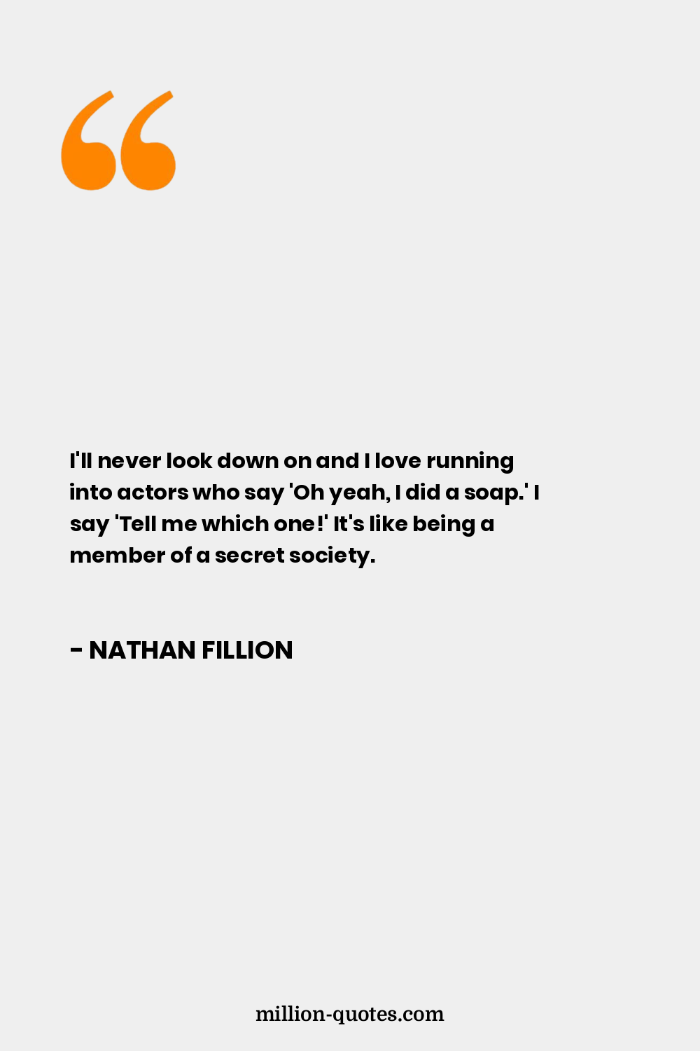 I'll never look down on and I love running into actors who say 'Oh yeah, I did a soap.' I say 'Tell me which one!' It's like being a member of a secret society.