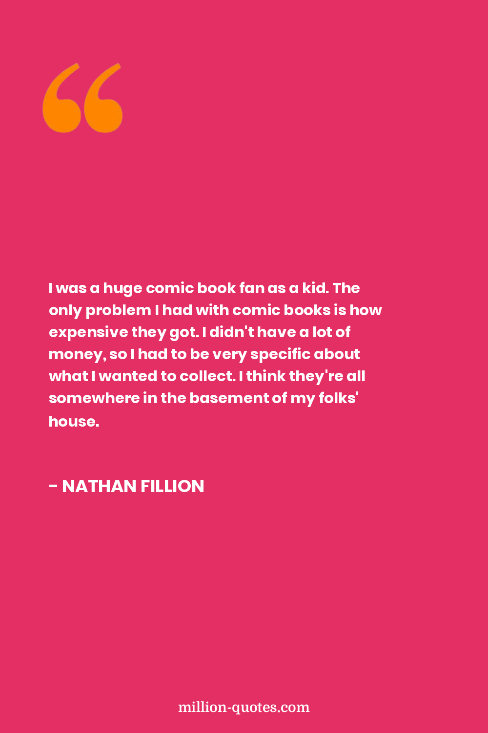 I was a huge comic book fan as a kid. The only problem I had with comic books is how expensive they got. I didn't have a lot of money, so I had to be very specific about what I wanted to collect. I think they're all somewhere in the basement of my folks' house.