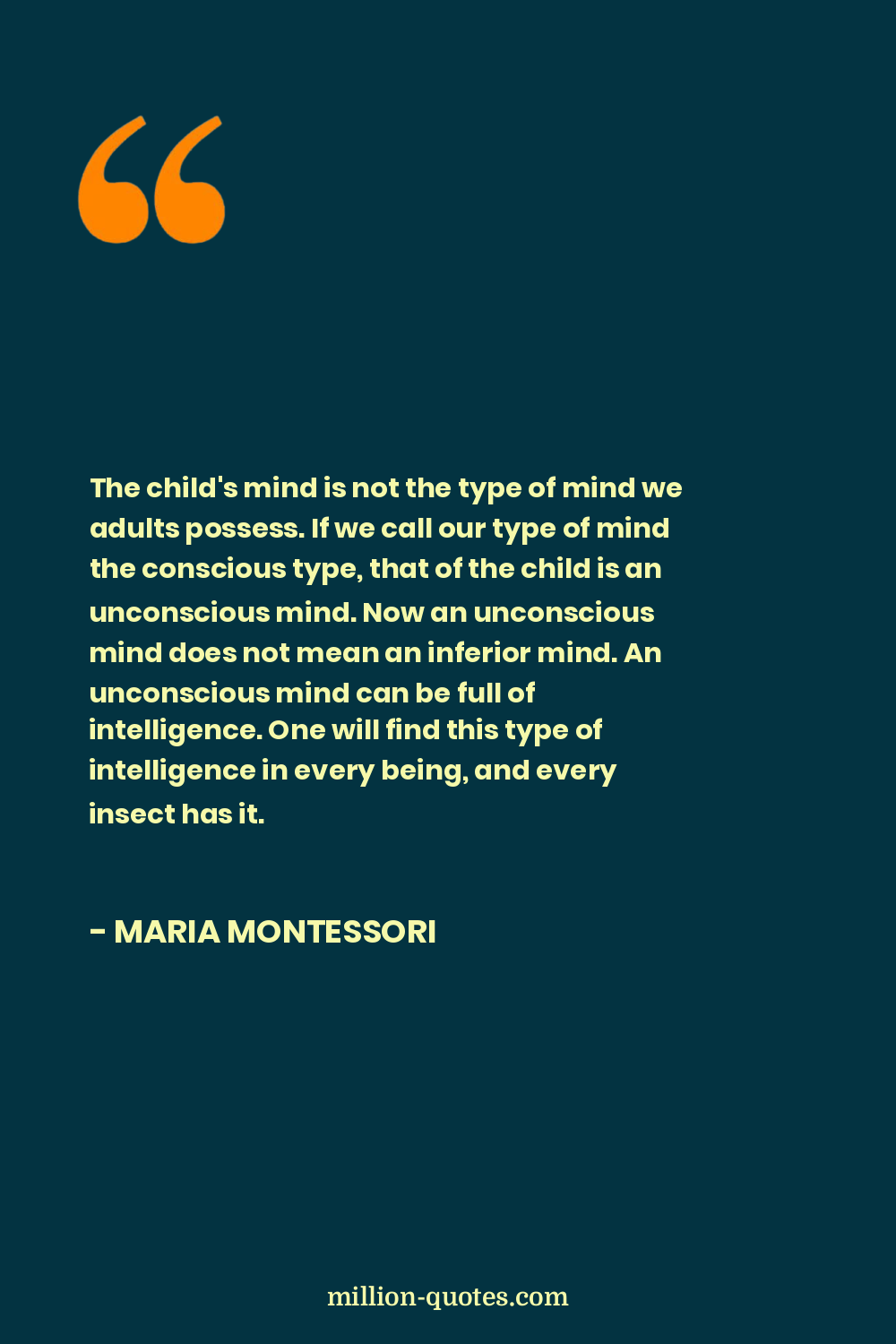 The child's mind is not the type of mind we adults possess. If we call our type of mind the conscious type, that of the child is an unconscious mind. Now an unconscious mind does not mean an inferior mind. An unconscious mind can be full of intelligence. One will find this type of intelligence in every being, and every insect has it.