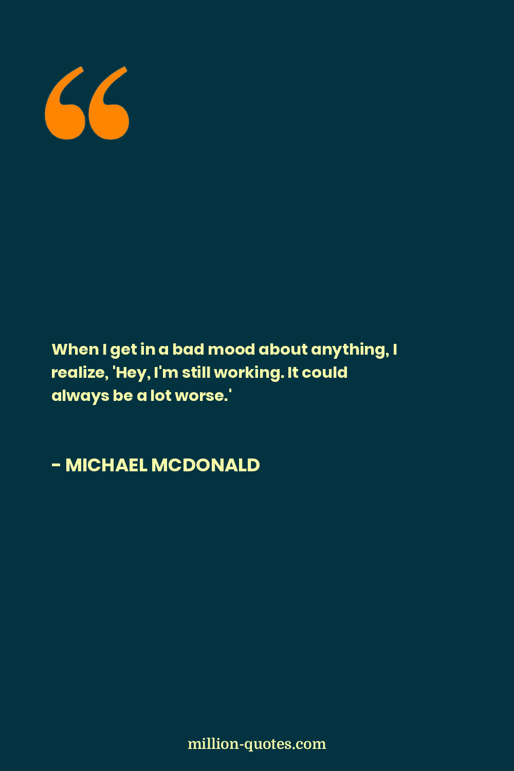 When I get in a bad mood about anything, I realize, 'Hey, I'm still working. It could always be a lot worse.'