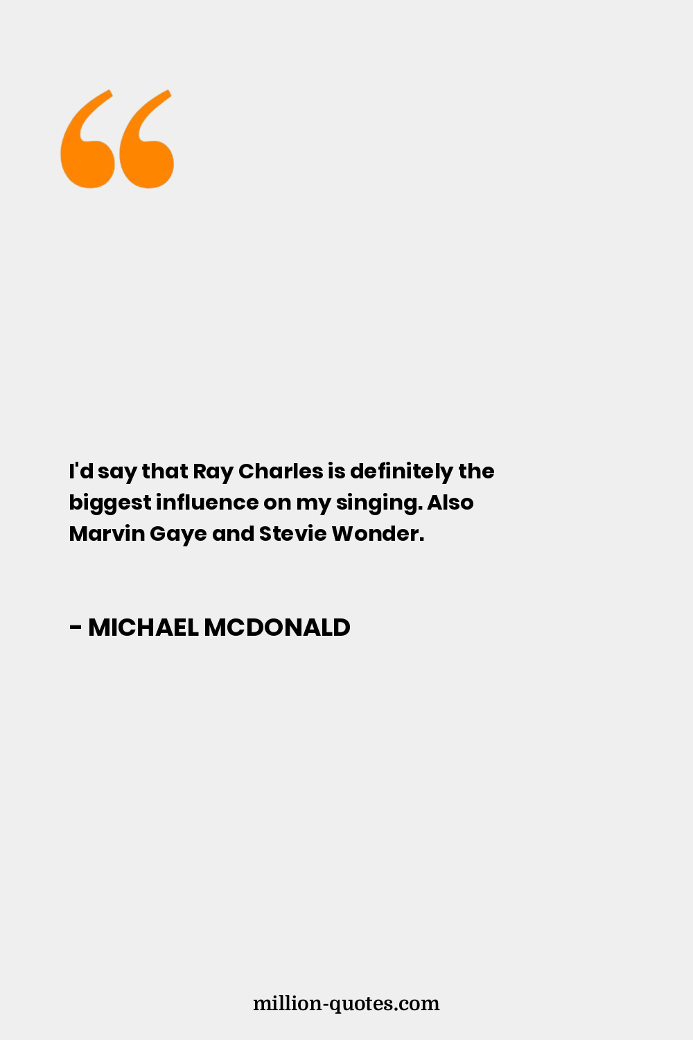 I'd say that Ray Charles is definitely the biggest influence on my singing. Also Marvin Gaye and Stevie Wonder.