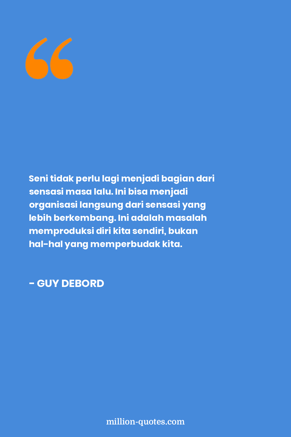 Dalam masyarakat di mana kondisi produksi modern berlaku, semua kehidupan menampilkan dirinya sebagai akumulasi tontonan yang sangat besar. Segala sesuatu yang dihidupi secara langsung telah berpindah menjadi sebuah representasi.