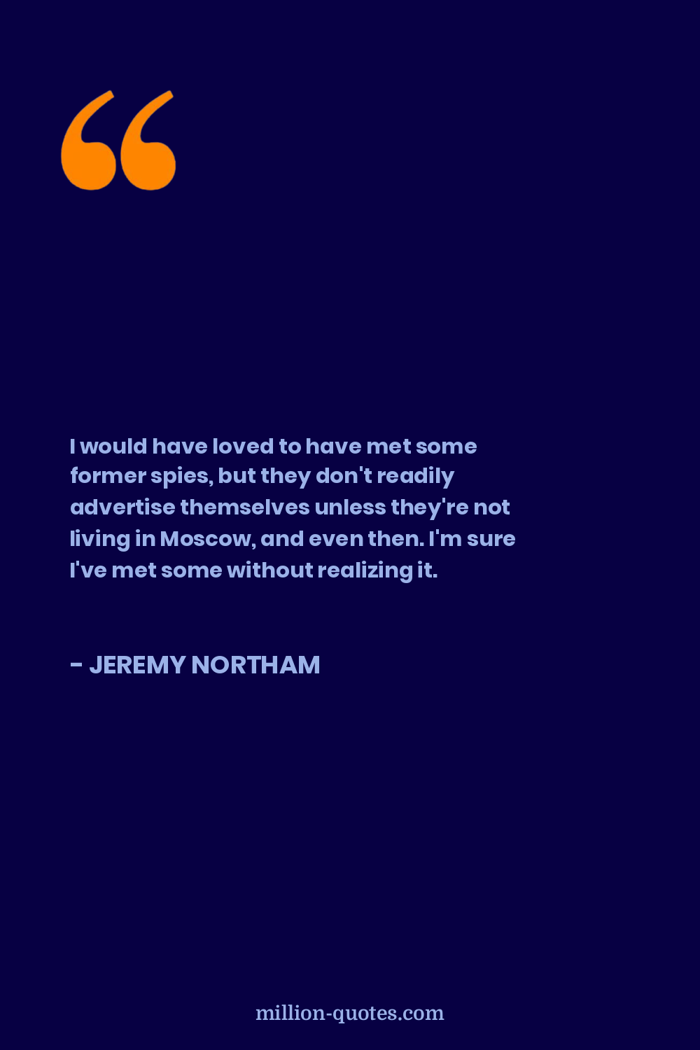 I would have loved to have met some former spies, but they don't readily advertise themselves unless they're not living in Moscow, and even then. I'm sure I've met some without realizing it.