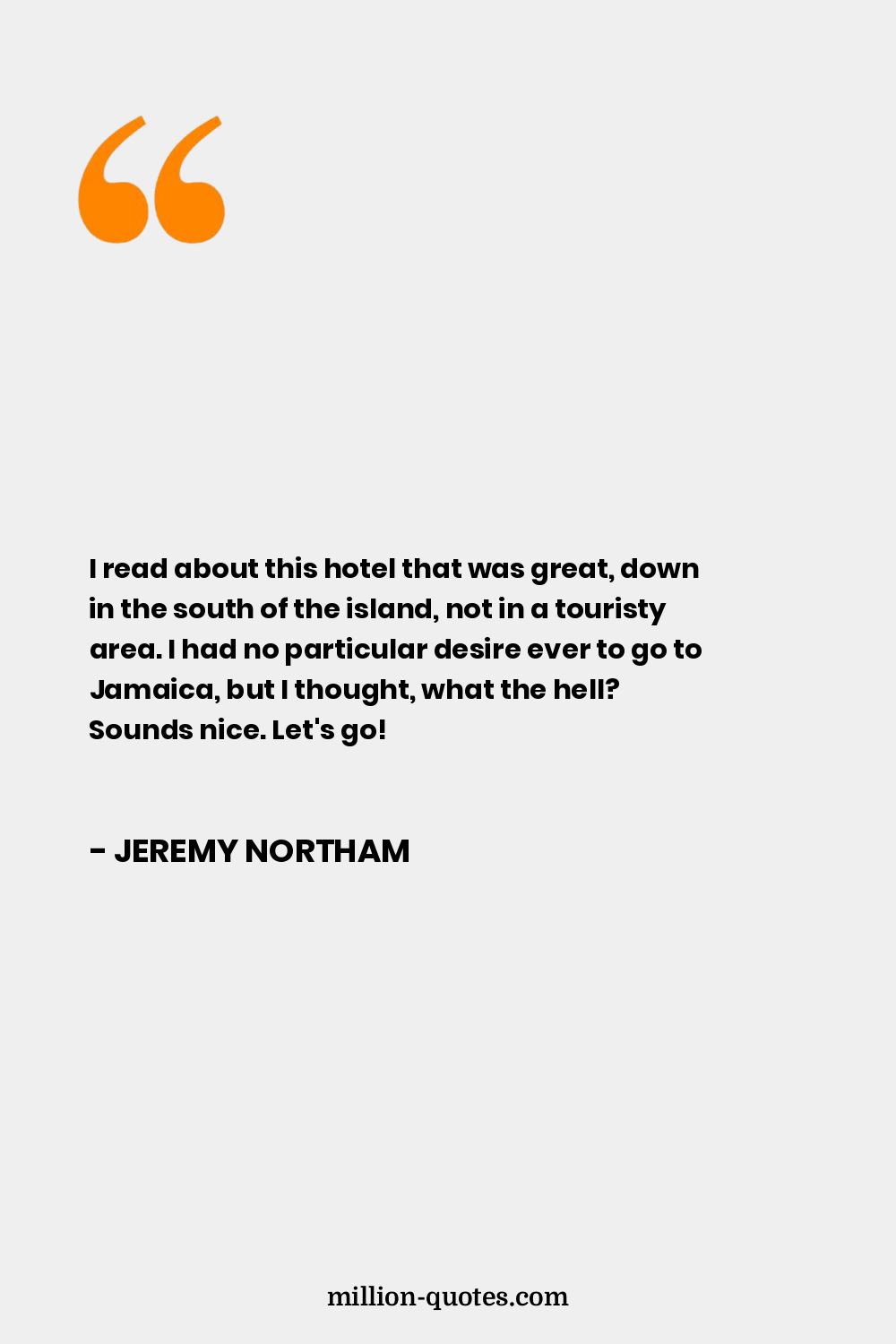 I read about this hotel that was great, down in the south of the island, not in a touristy area. I had no particular desire ever to go to Jamaica, but I thought, what the hell? Sounds nice. Let's go!