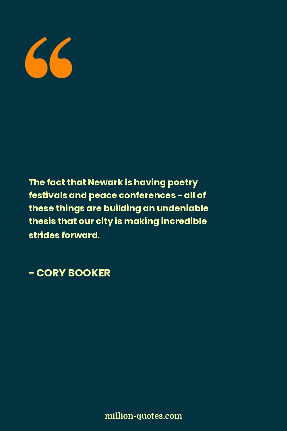 The fact that Newark is having poetry festivals and peace conferences - all of these things are building an undeniable thesis that our city is making incredible strides forward.