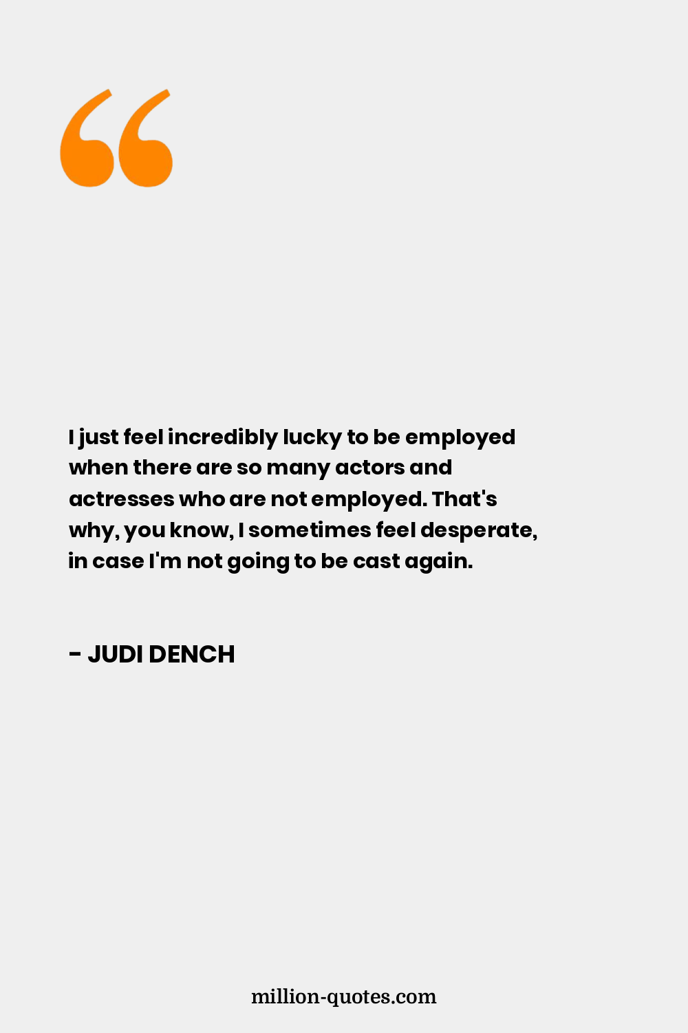 I just feel incredibly lucky to be employed when there are so many actors and actresses who are not employed. That's why, you know, I sometimes feel desperate, in case I'm not going to be cast again.