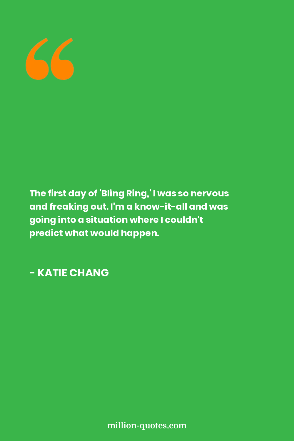 The first day of 'Bling Ring,' I was so nervous and freaking out. I'm a know-it-all and was going into a situation where I couldn't predict what would happen.