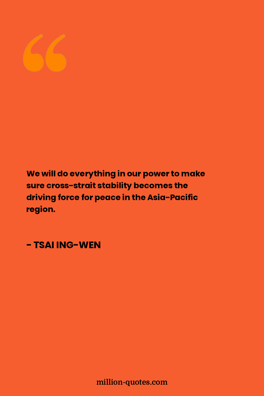 We will do everything in our power to make sure cross-strait stability becomes the driving force for peace in the Asia-Pacific region.