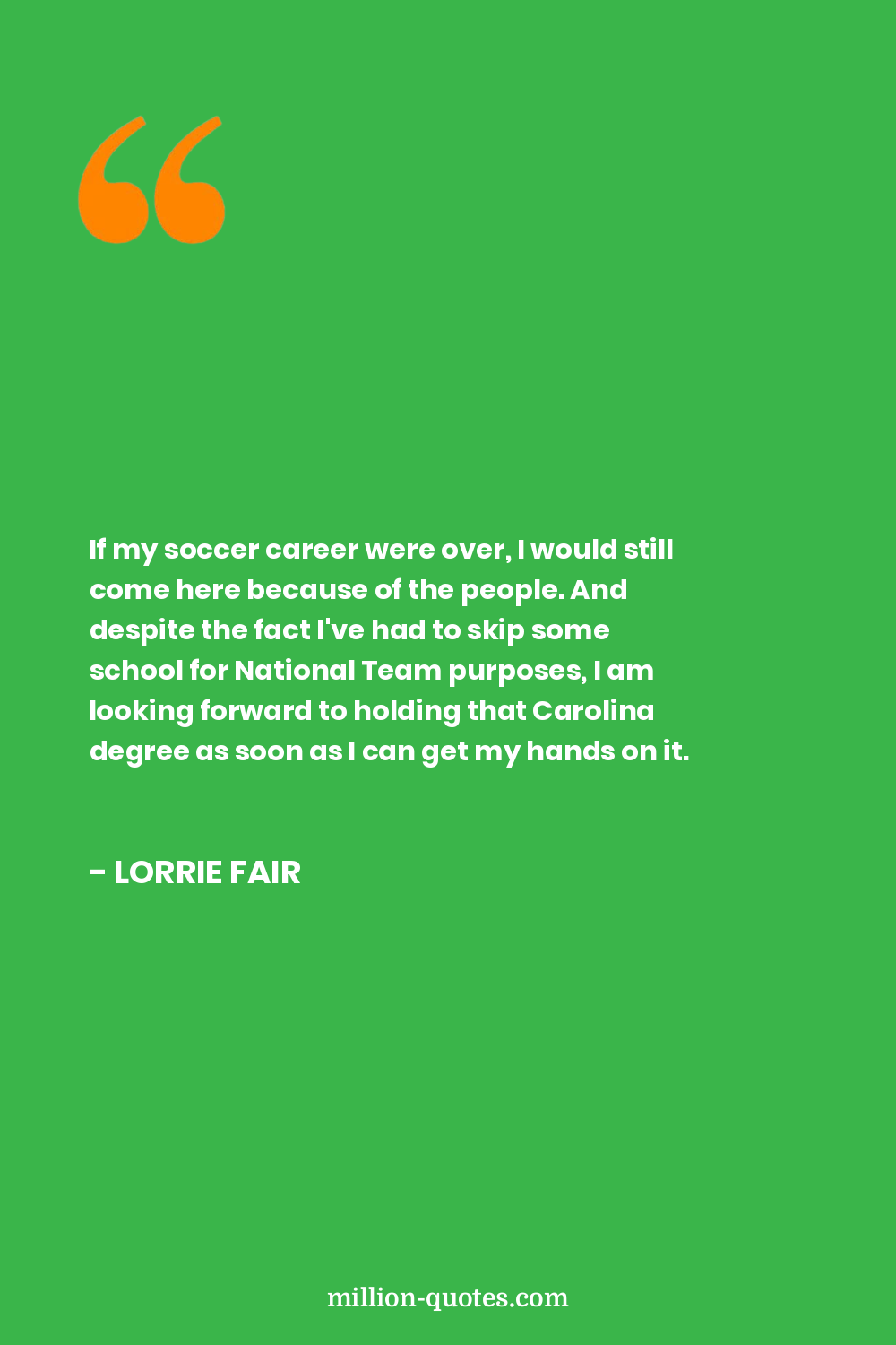 If my soccer career were over, I would still come here because of the people. And despite the fact I've had to skip some school for National Team purposes, I am looking forward to holding that Carolina degree as soon as I can get my hands on it.
